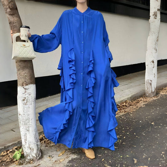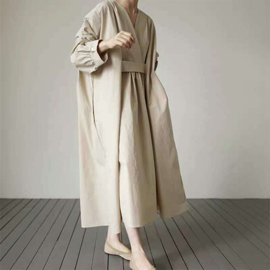 【ワンピース】コットン100% 春 秋ゆるリラックス大振裾 長袖 ワンピース 【JZシリーズ】