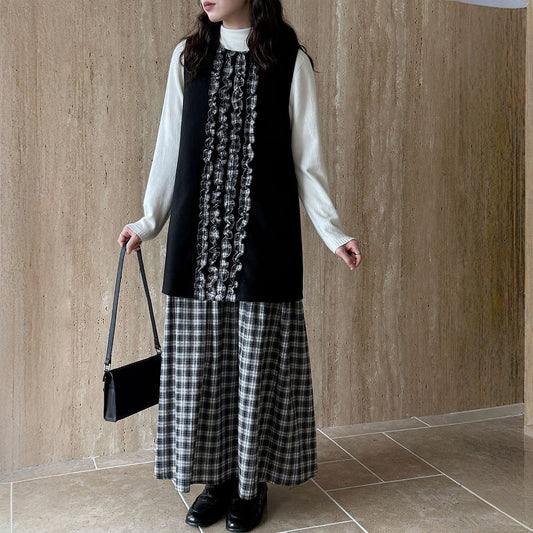 【ワンピース】春 秋 冬 チェック柄 マーメイド 花びらツイード ベスト型 ワンピース 【JZシリーズ】