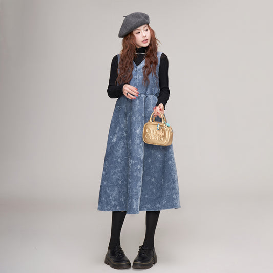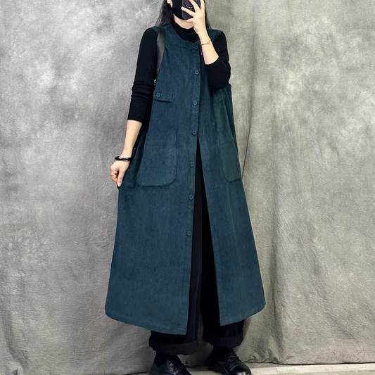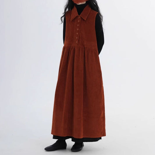 【ワンピース】春 秋 冬 レトロ コーデュロイ生地 合わせやすい カーディガン ノースリーブワンピース