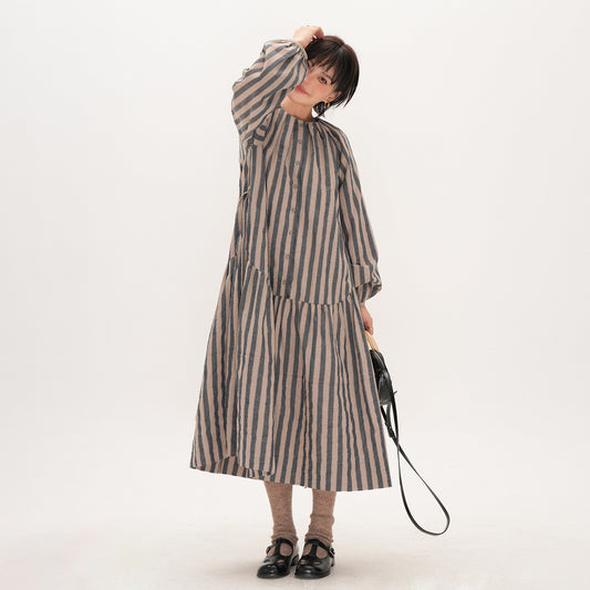 【ワンピース】ストライプ ワンピース 秋 オリジナル 日本風 ゆったり ミディアム丈 長袖 ロングワンピース【SHシリーズ】【JZシリーズ】【15-25日発送】