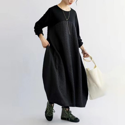 【ワンピース】夏春秋 シック ラウンドネック長袖 ワンピース