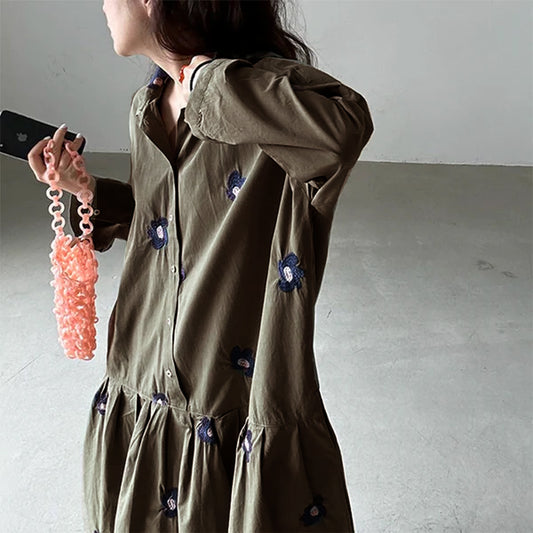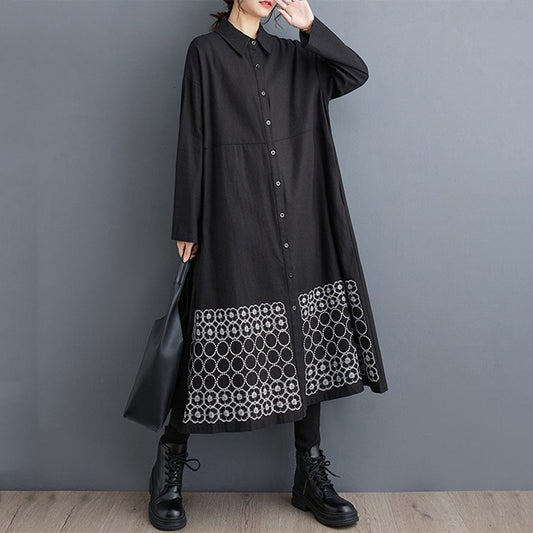 【ワンピース】春秋 気質よい プラスサイズ 刺繍 ゆったり 長袖ワンピース