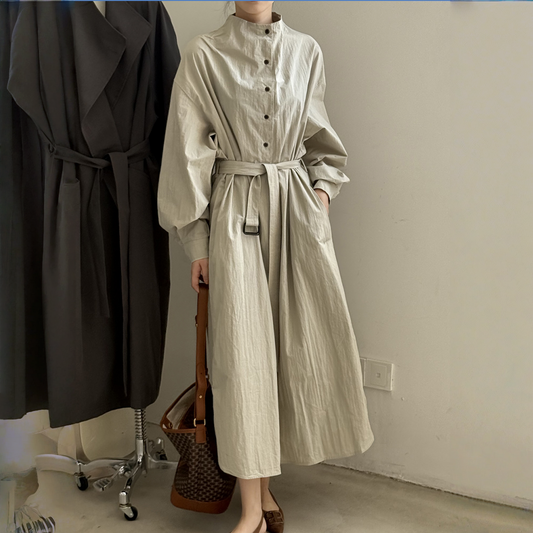 【ワンピース】春秋 エレガント ボタン付き ベルト イレギュラー 長袖 ワンピース