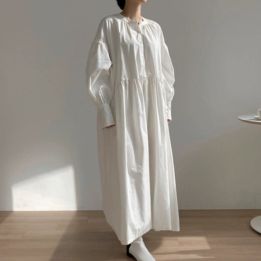 【ワンピース】春秋 海外トレンド ゆったり シャーリング 長袖ワンピース