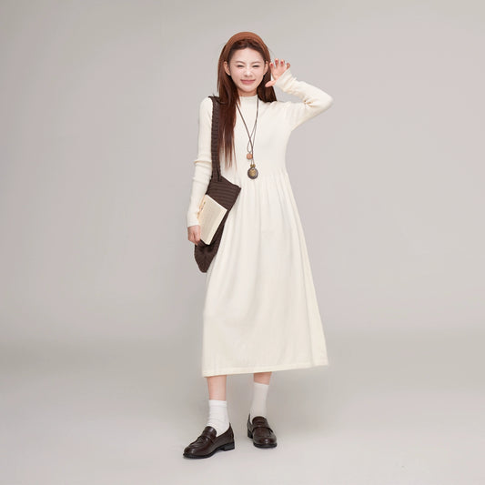 【ワンピース】春秋冬 レトロ ハイネック ニット ルーズ ファッショナブル Aライン 長袖ワンピース【AHシリーズ】