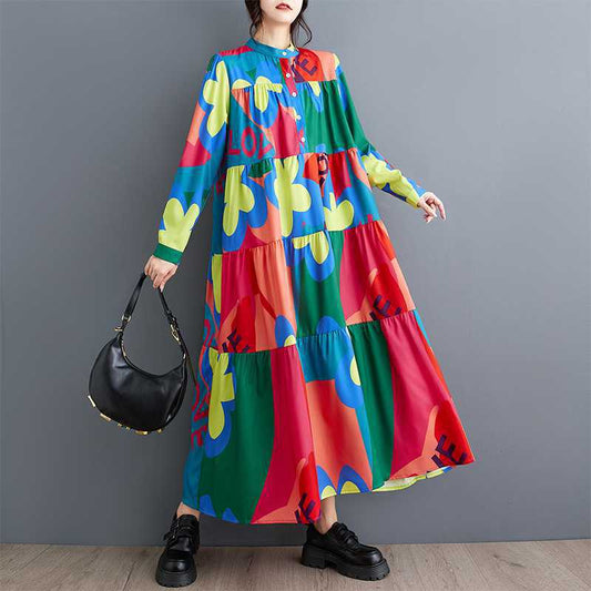 【ワンピース】春 秋 冬レトロ プリント ゆったり 長袖 ワンピース 【JZシリーズ】