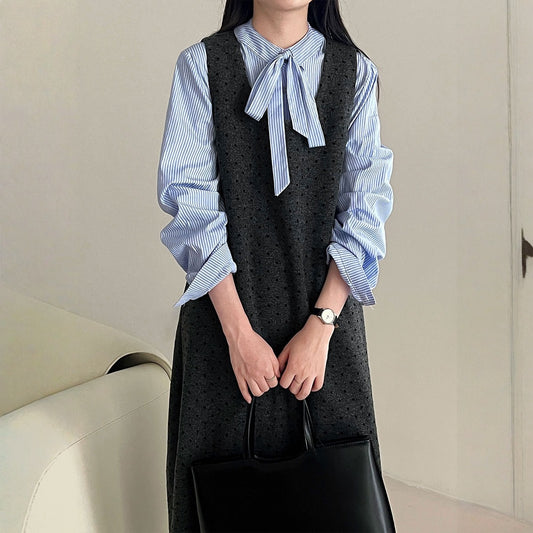 【ワンピース】春 秋 冬 プレッピースタイル レディ風 ベスト型 ノースリーブ ワンピース 【JZシリーズ】