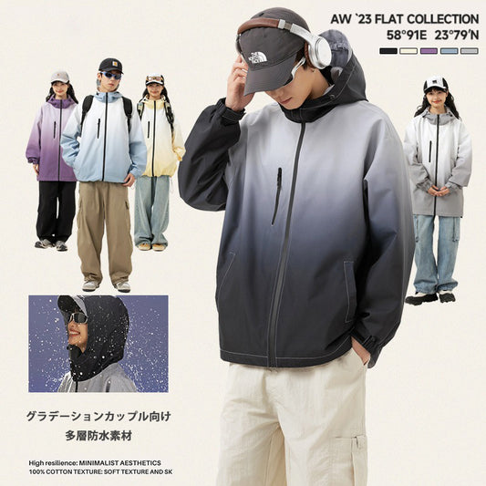 【アウター】グラデーションデザイン 春新作 ユニセックス フード付き 登山 防水防風 マウンテンパーカー ジャケット【FCシリーズ】