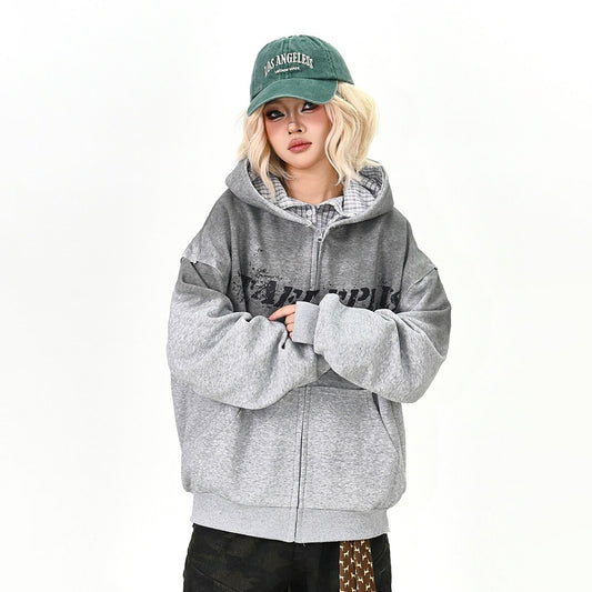 【アウター】グラデーションロゴ フード付きジップパーカーカーディガン 春 新作 ゆったり ユニセックス アメリカンカレッジ【FCシリーズ】