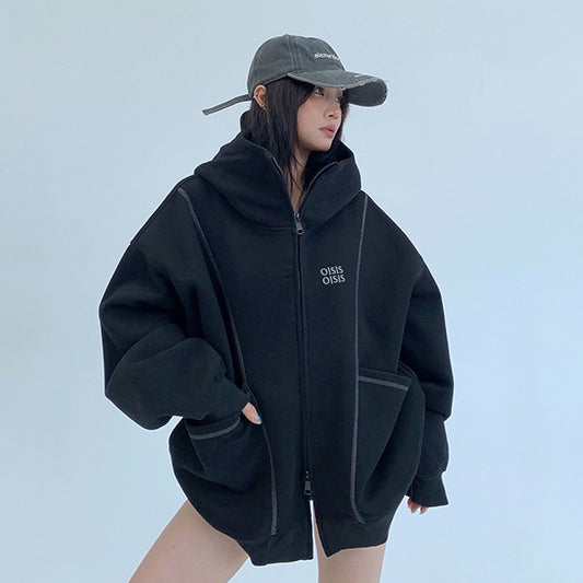 【アウター】春秋 Oversize サイドジッパー プリントフード付き カップル用 ジャケット【FCシリーズ】