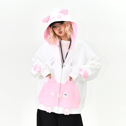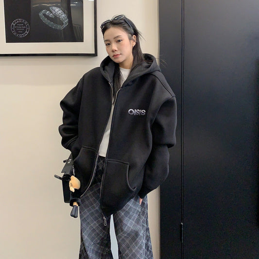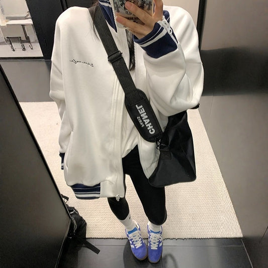 【アウター】春新作 ワッペン刺繍 パーカーカーディガン ルーズフィット カレッジ風 ユニセックス【FCシリーズ】