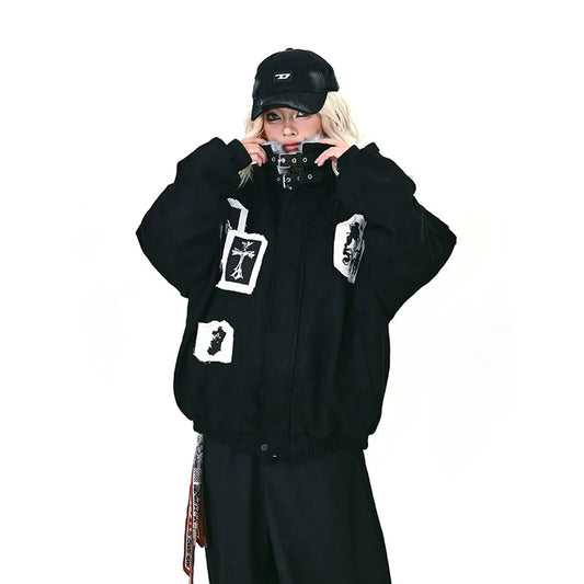 🔥冬の必須アウター🔥【アウター】秋冬 アメリカン カップル服 ルース レトロ 刺繍 フード付き コットン ジャケット【FCシリーズ】