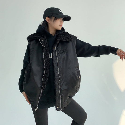 【アウター】秋冬 季節感満点 刺繍 両面着用 厚い保温 ベストジャケット【FCシリーズ】