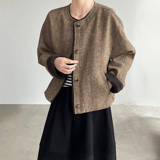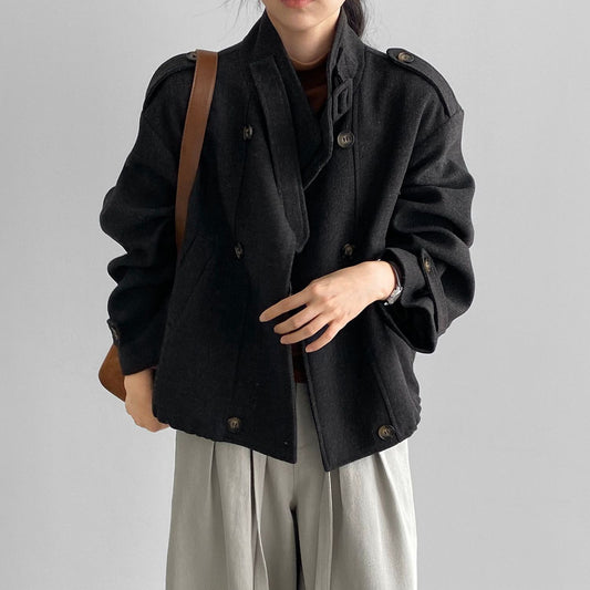 【アウター】秋冬 韓国風 ヴィンテージ感 ウールコート レディース 立ち襟 ジャケット【JZシリーズ】