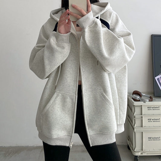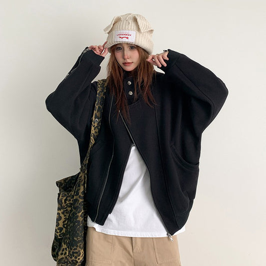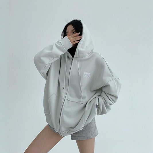 【アウター】アメリカンヴィンテージ ユニーク カジュアル ゆったり フード付き ジップアップスウェット レディースジャケット【FCシリーズ】【15~20日内発送】