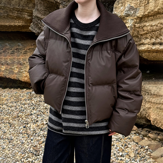 【アウター】おしゃれ キャメル色 大きめファー付きショートダウンコート 2025冬 アメリカンヴィンテージ風 小柄向け 厚手 保温コート レディース【JZシリーズ】