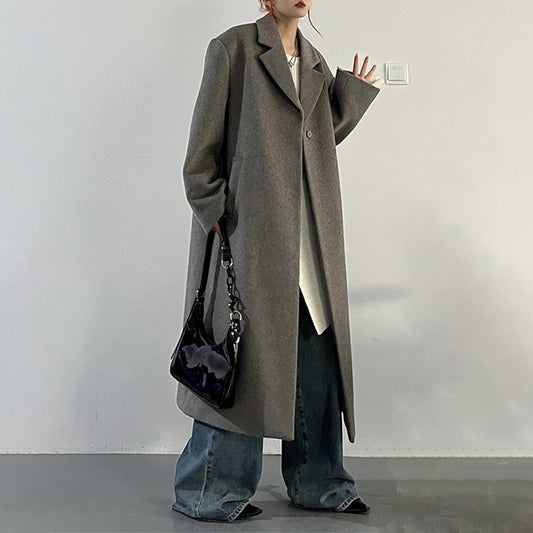 【アウター】秋冬新作 グレー ゆったり ロングカーディガン ニットコート 韓国風【FCシリーズ】