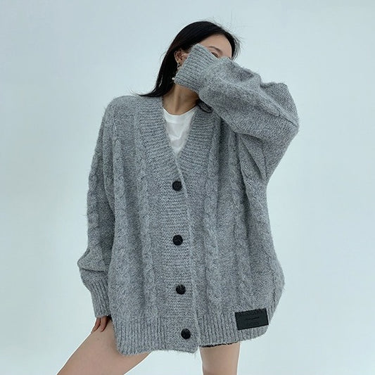 【アウター】韓国風 ゆるニット Vネック ウール混 カーディガン レディース 秋冬 新作 ゆったり【JZシリーズ】