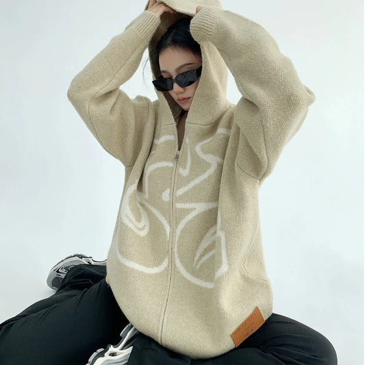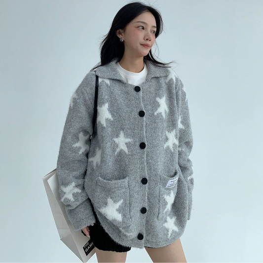 【アウター】韓国風 レトロ 星柄 合わせやすい oversize ニットセーター ジャケット【FCシリーズ】
