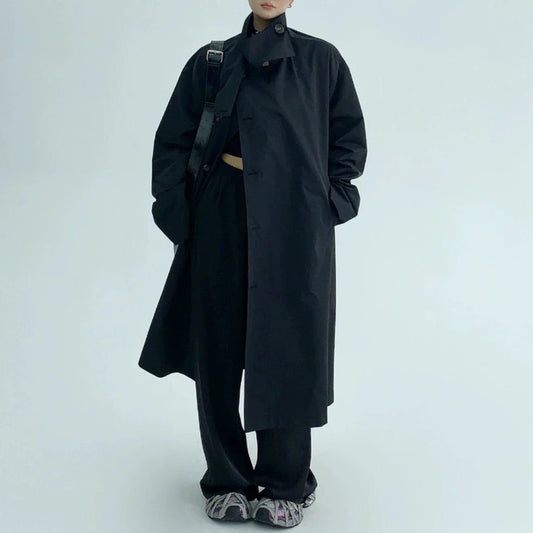 【アウター】秋冬 暗黒系デザイン ミディ丈 ゆったり大きめサイズ フード付きトレンチコート/綿入れコート レディース【AHシリーズ】