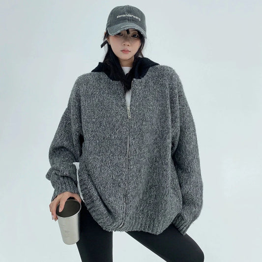 5カラー【アウター】秋冬新作 フード付き ニットカーディガン レディース ゆったり 高見え ルーズ【JZシリーズ】