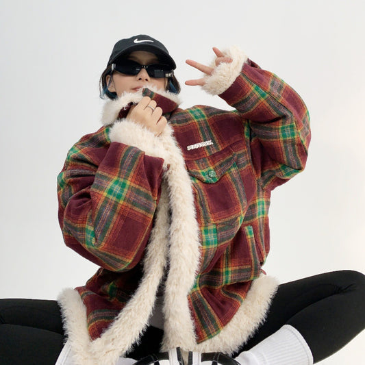 【アウター】秋冬 レトロ ゆったり 厚い保温 切り替えし チェック柄 ジャケット【FCシリーズ】