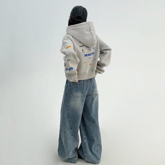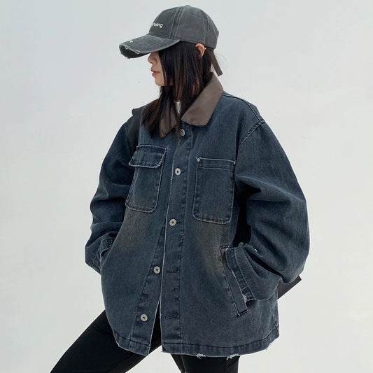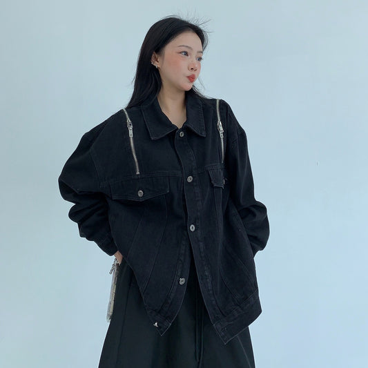 【アウター】春秋 刺繍 OVERSIZE 肩当て デニム ジャケット【FCシリーズ】