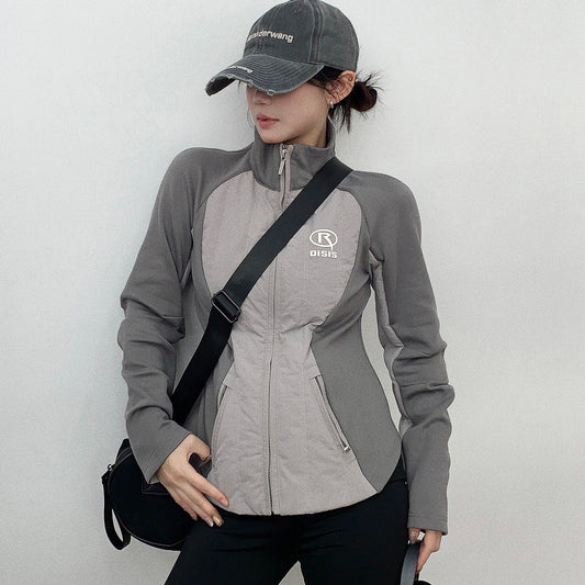 【アウター】配色 春秋 ショートスリム スタンドカラー ジャケット【FCシリーズ】