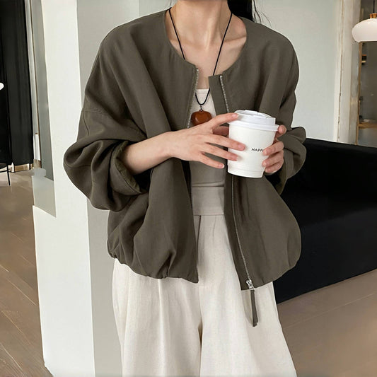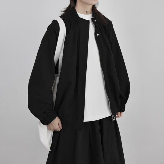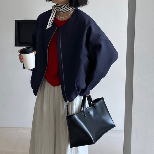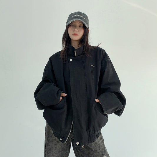 【アウター】ミニマル高級感 春秋 ビッグジップ スタンドカラー ジャケット【FCシリーズ】