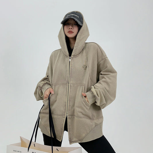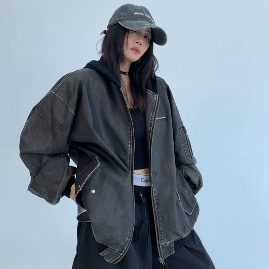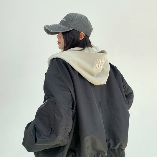 【アウター】ユニセックス フード付きジャケット 美式カジュアル ゆったりシルエット【FCシリーズ】【10~15日内発送】