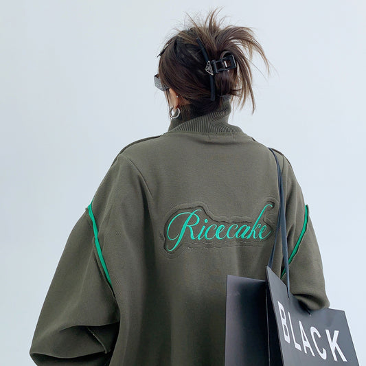 【アウター】合わせやすい 配色 刺繍 春秋 スタンドカラー ジャケット【FCシリーズ】