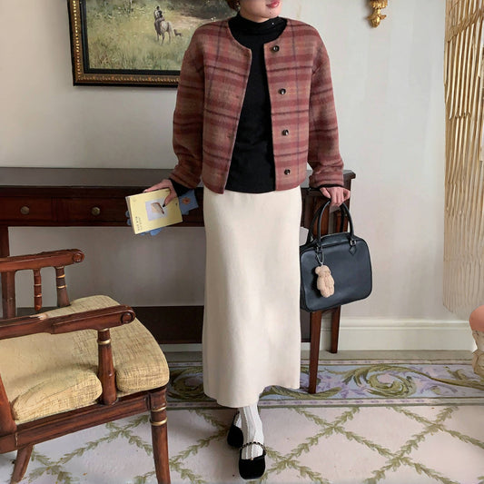 【アウター】レトロ ジャカード ニット生地 春秋 スリム ニットセーターカーディガン【FCシリーズ】