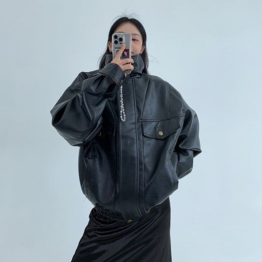 【アウター】高級感 カジュアル ショート丈 超おしゃれなストリートスタイル ゆったりPUレザージャケット【JZシリーズ】