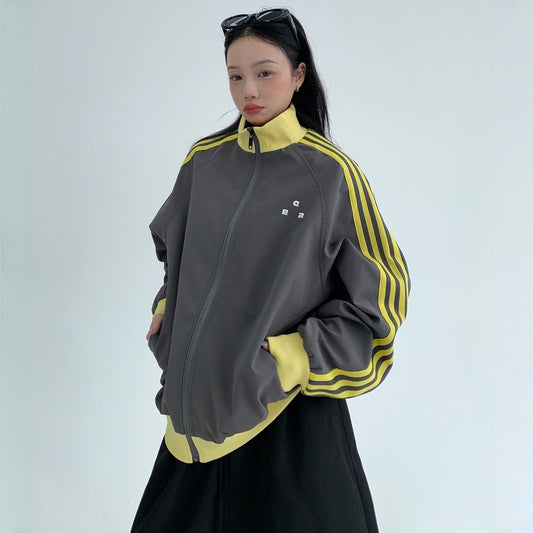 【アウター】初秋新作 韓国風 スタジャン風 カジュアル ラグランスリーブ カーディガン【JZシリーズ】