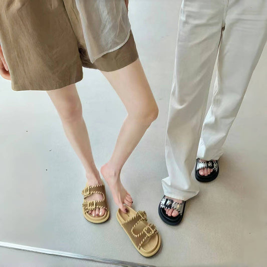 【シューズ】夏 ダブルボタン 厚底 サボサンダル