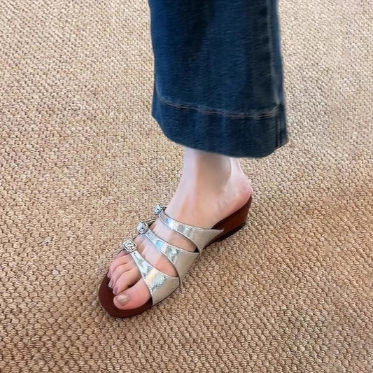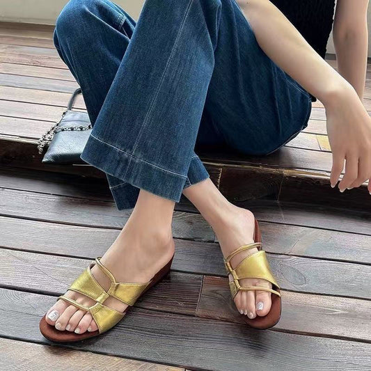 【シューズ】個性デザイン スクエアトゥ フラット バックストラップ サンダル レディース オープントゥ コンフォートスリッパ