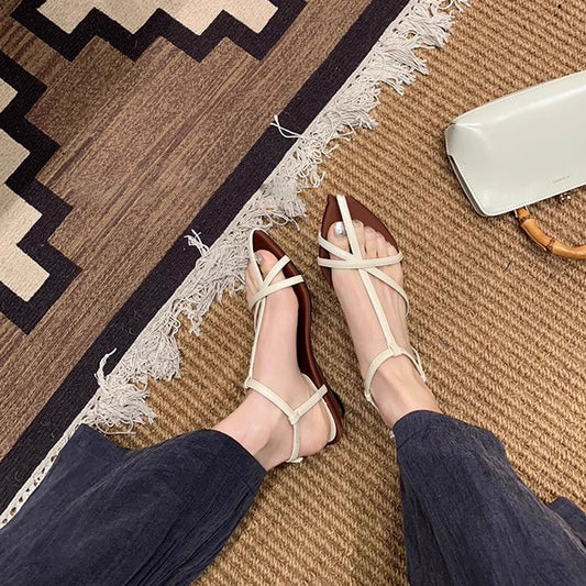 【シューズ】夏新作 フレンチエレガンス ポインテッドトゥ オープントゥ ローマサンダル