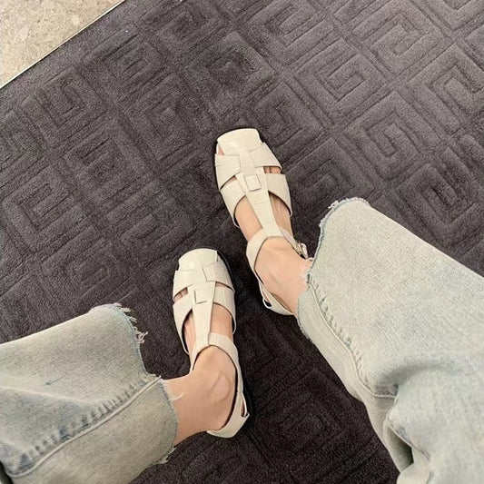 【シューズ】夏 新作 ワンストラップ スクエアトゥ アウトドア用 レトロ風 ローヒールフラットサンダル