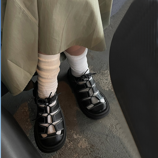 【シューズ】夏 レトロ風 カットアウト ブレード編み ローマンサンダル