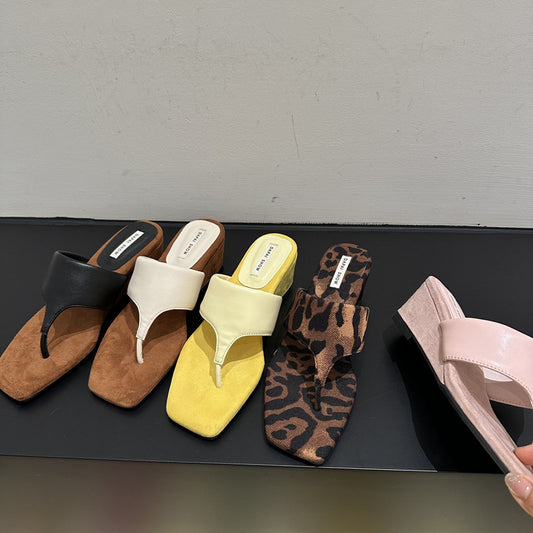 【シューズ】厚底スクエアトゥ トングサンダル ヴィンテージミニマル ウェッジソール ビーチサンダル