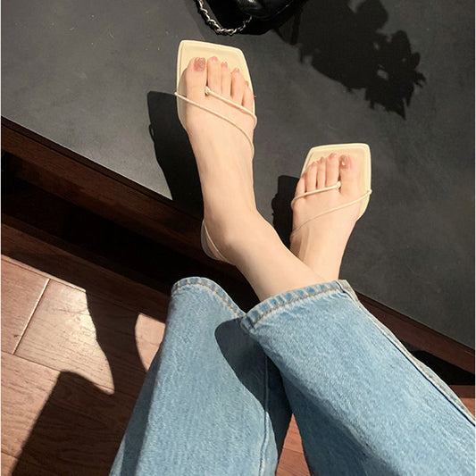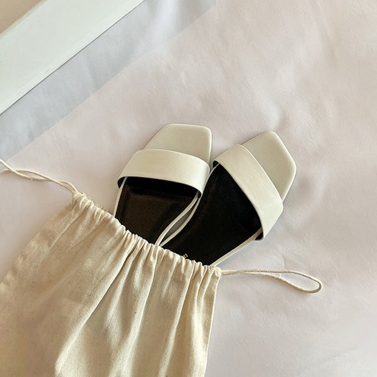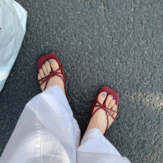 【シューズ】上品見え スクエアトゥ フラットミニマルストラップサンダル レディース 夏用 外履き