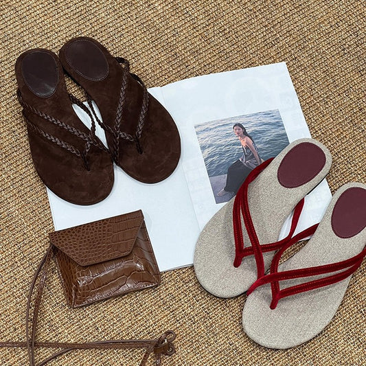 【シューズ】ヴィンテージ風カジュアルリゾートビーチフラットサンダル