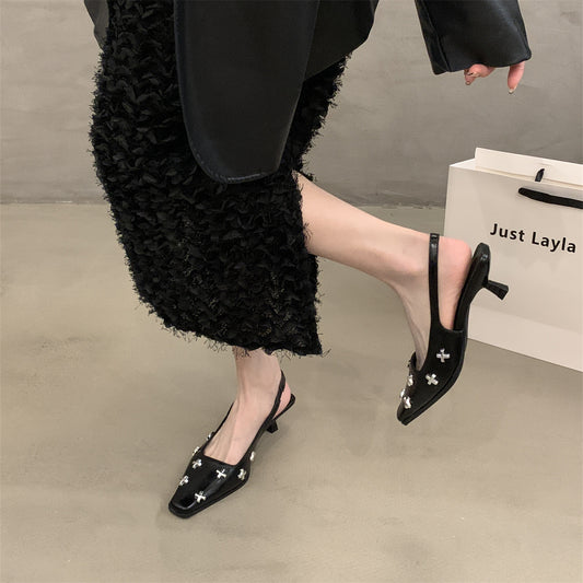 【シューズ】春夏新作 フレンチスタイル 包み足元 サンダル 細ヒール 疲れにくい スカートにもぴったり パンプス