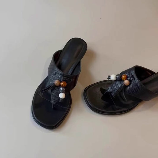 【シューズ】ヴィンテージ風 ビーズフリンジ トングサンダル 外履き リゾートローマ風