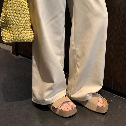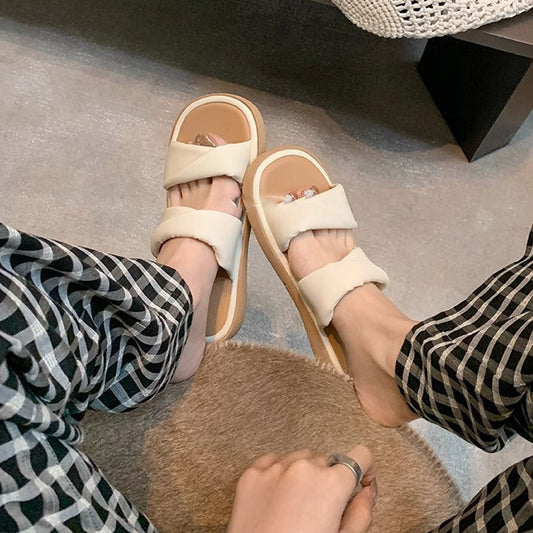 【シューズ】厚底ウェッジソール 一字ストラップサンダル フレンチ風 エレガントスリッパ