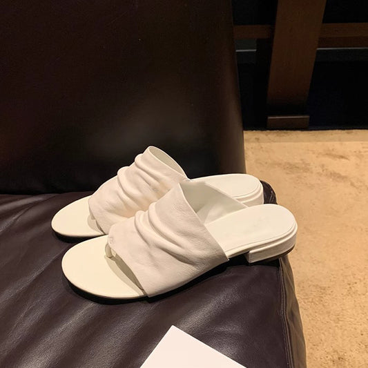 【シューズ】夏新作 リゾート風 ビーチアラン 細かいシワ デザイン フラットサンダル レディース 外履き用