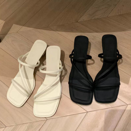【シューズ】夏 ローヒール キック スクエアトゥサンダル