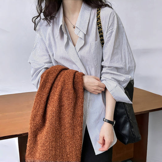 【トップス】秋新作 韓国風ハイエンドシャツ ルーズ ブラウス|上品×抜け感スタイル【SNシリーズ】