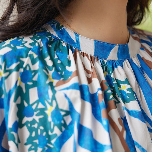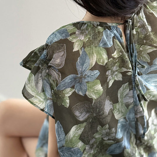 【トップス】フレンチスタイル 花柄 ラウンドネック フリルスリーブ シャツ【JZシリーズ】【SHシリーズ】
