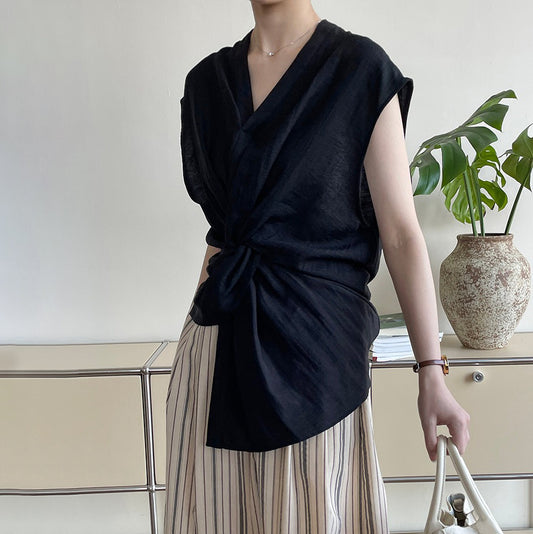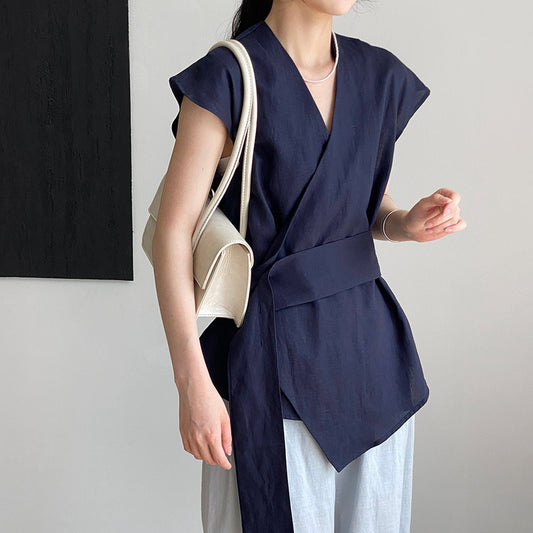 【トップス】夏のゆったりとした雰囲気 気品ある調整可能ウエスト Vネック シャツ【JZシリーズ】